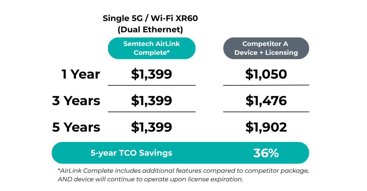 Purchase and register a new AirLink XR60 and receive a 5-year subscription to AirLink Complete:
